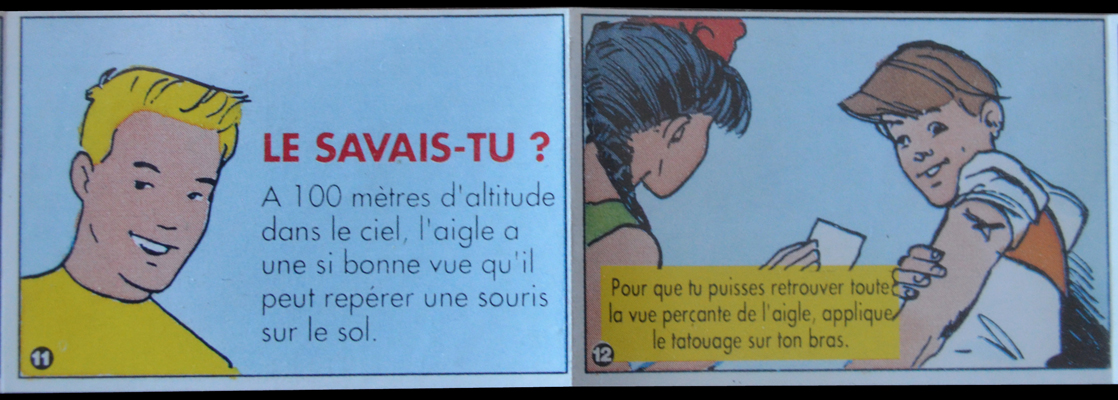 On pouvait trouver 4 bandes dessinées dans les sachets, accompagnées de 8 tatouages.